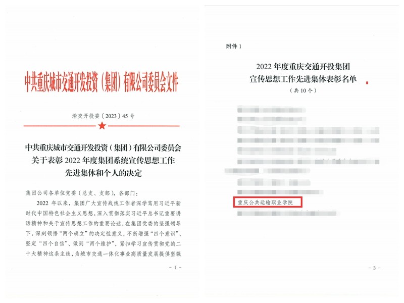 学校获评重庆交通开投集团2022年度宣传思想工作先进集体