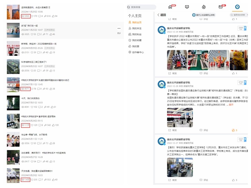 在对内宣传方面,进一步加大学校视频号、微博、微信等新媒体内容建设、运营维护和融合发展力度,学校公众微信号多次跻身全市高校院校十几名,新媒体整体关注度、影响力显著增强。
