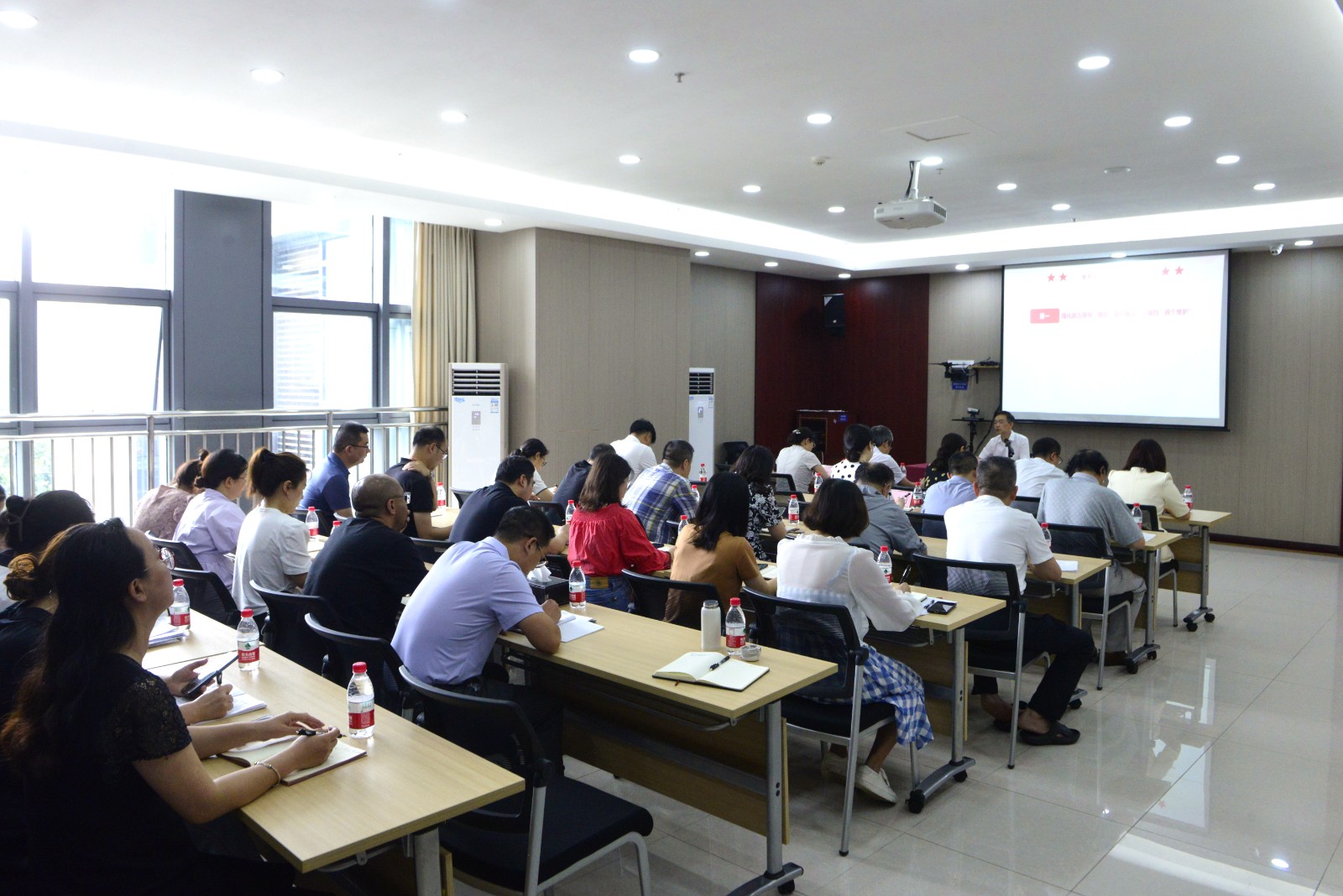学校领导班子成员、全体中层干部、各党总支、直属党支部书记到场聆听。会议由学校党委书记彭超主持。