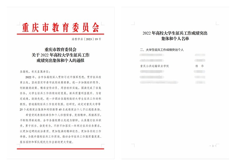 重庆市委教育工委近日发出专门通知,公布优秀共产党员、优秀党务工作者和先进基层党组织名单、2022年高校大学生征兵工作成绩突出集体和个人名单,重庆交通开投集团党委也发出专门通知,公布集团“党员先锋岗”“党员示范责任区”名单,电子游戏1个集体、4名个人榜上有名,获评市教委和交通开投集团先进。