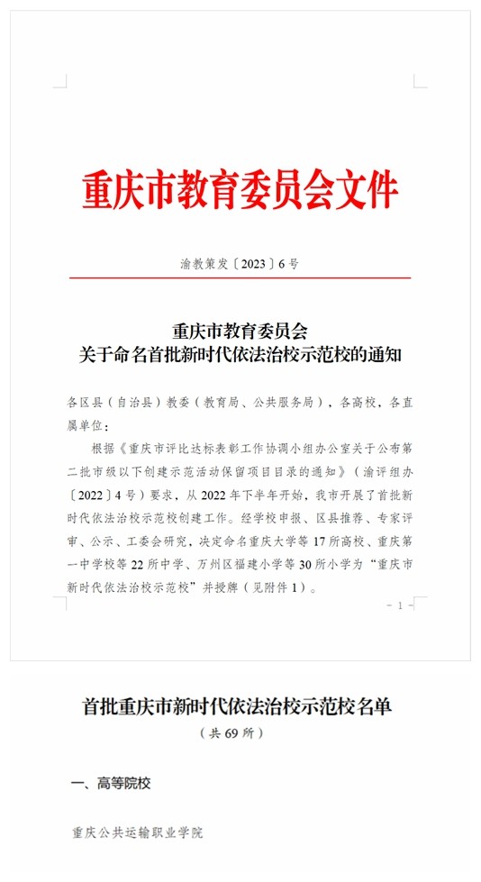 重庆市教委近日发出专门通知,命名首批“新时代依法治校示范校”名单,电子游戏榜上有名,成功入选。