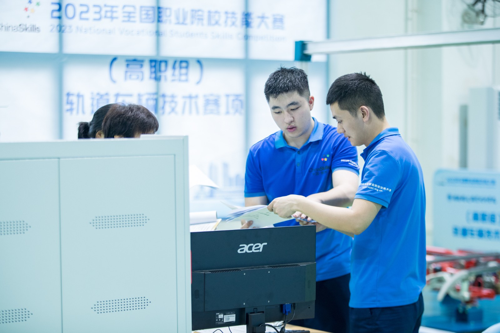 比赛以师生同赛的形式进行,主要包括“车辆整车检查与试验”“受电弓的安装与调试”及“客室车门的安装调试与优化设计”三个技能实操项目,内容涵盖车内外检查、车辆电气试验及故障处理、受电弓的机械部件检修、客室车门部件组装、客室车门电气功能测试等,综合考察车辆机械系统检修、维护能力,车辆电气系统检修、维护能力,车辆智能运维技术应用能力以及分析问题和解决问题等综合职业能力。