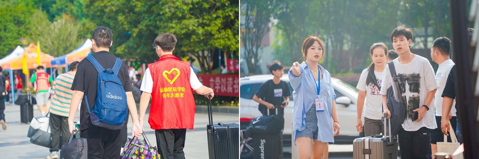 为了成人成才这个共同的目标,新生和家长虽一路奔波、风尘仆仆,脸上却写满幸福和喜悦;迎新老师和志愿者虽不停奔走、忙忙碌碌,心中却满怀爱意和欢迎。于是,校园里有了和谐的氛围、美丽的身影。