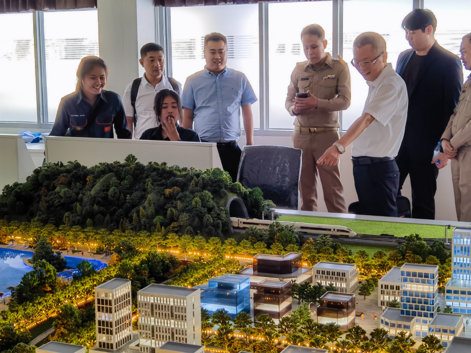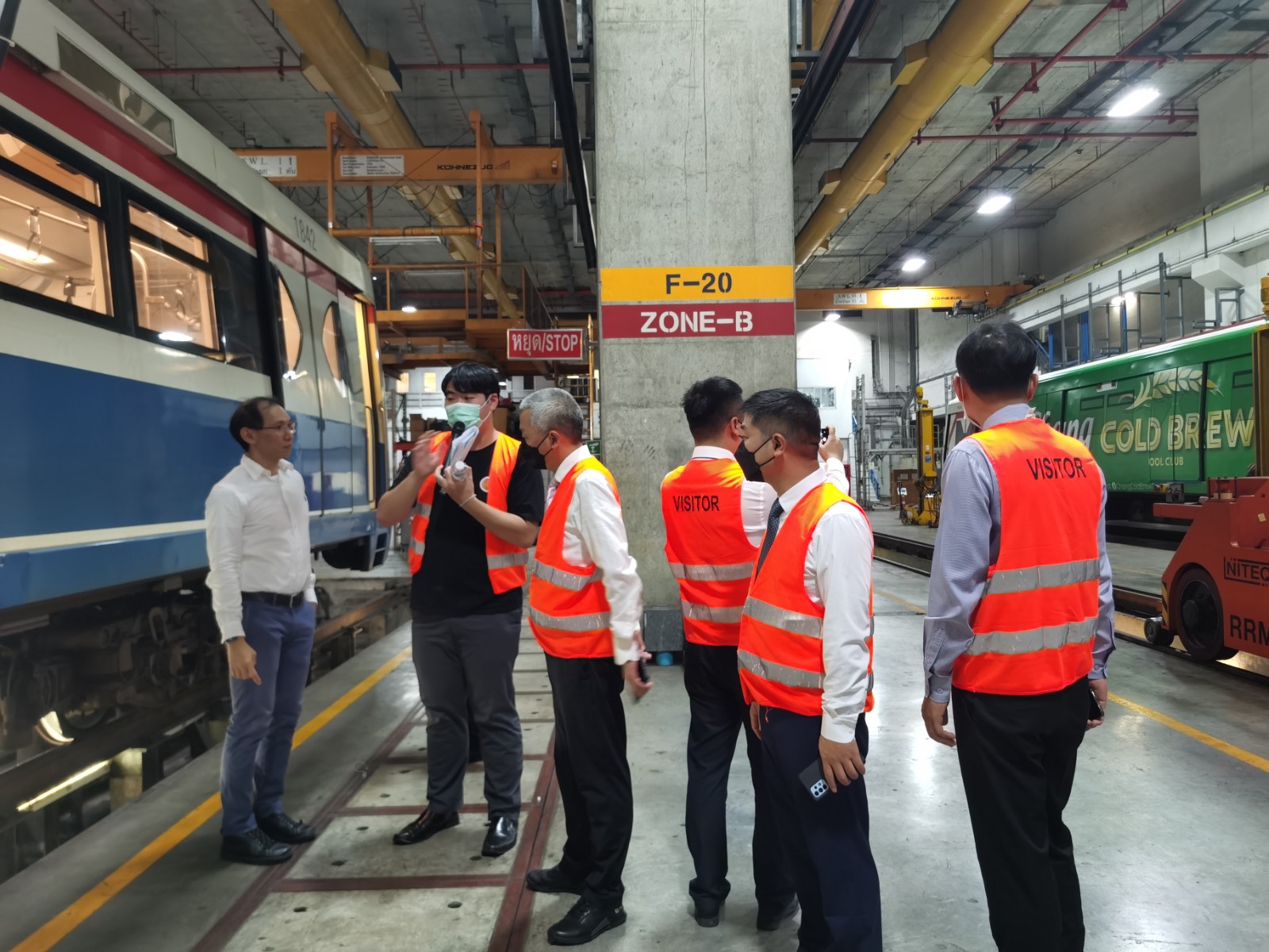 29日,张东旭一行在素叻他尼技术学院领导陪同下,到与中国轨道交通企业有多方面合作的泰国第一家建设跨座式单轨的曼谷大众运输系统公共有限公司参观考察,听取公司车辆段总监Sorradech Songsasaen关于公司总体情况介绍,围绕发挥校企双方优势,在培训项目、交通科技、交通人才培养等方面达成合作意向。
