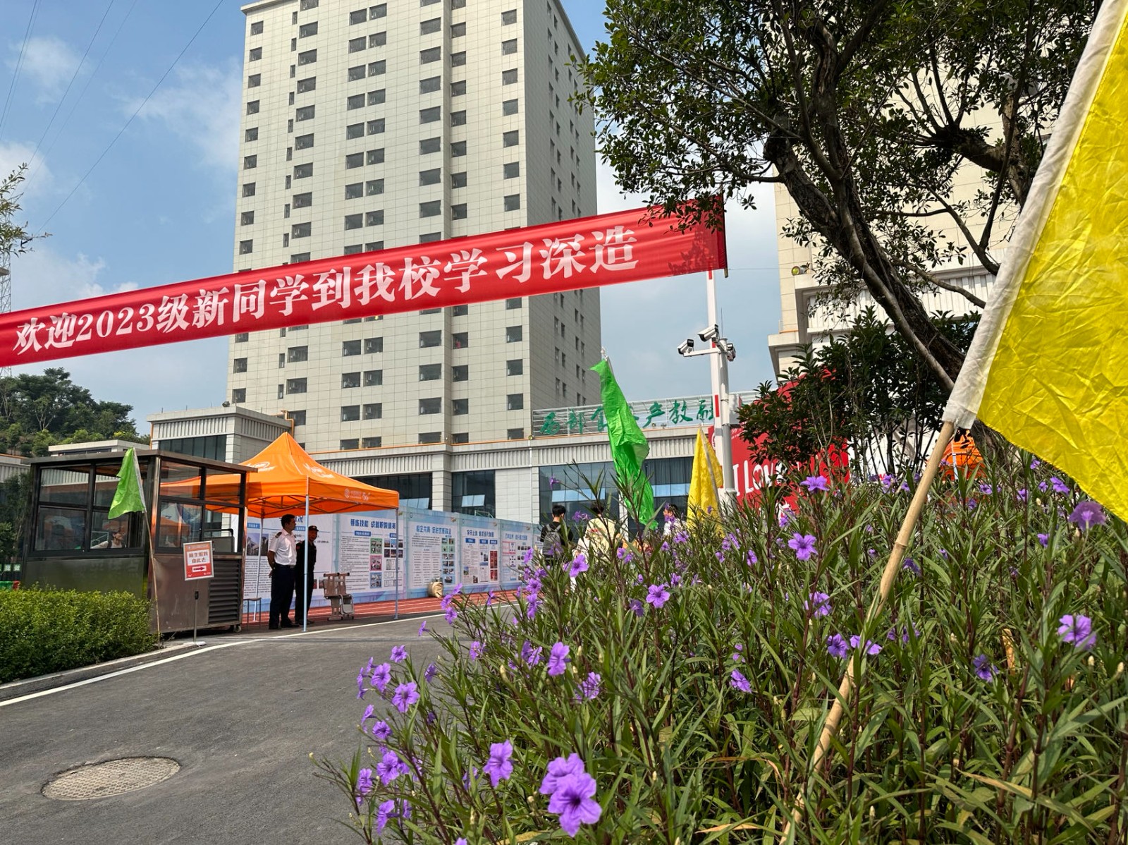 在地方党委政府的大力支持和相关部门积极配合下,经过全校师生尤其是全体迎新工作人员、学生志愿者,2023级新生及家长2天的共同努力,1700多名2023级新生顺利入住学校德感产教融合中心,实现平稳开学。