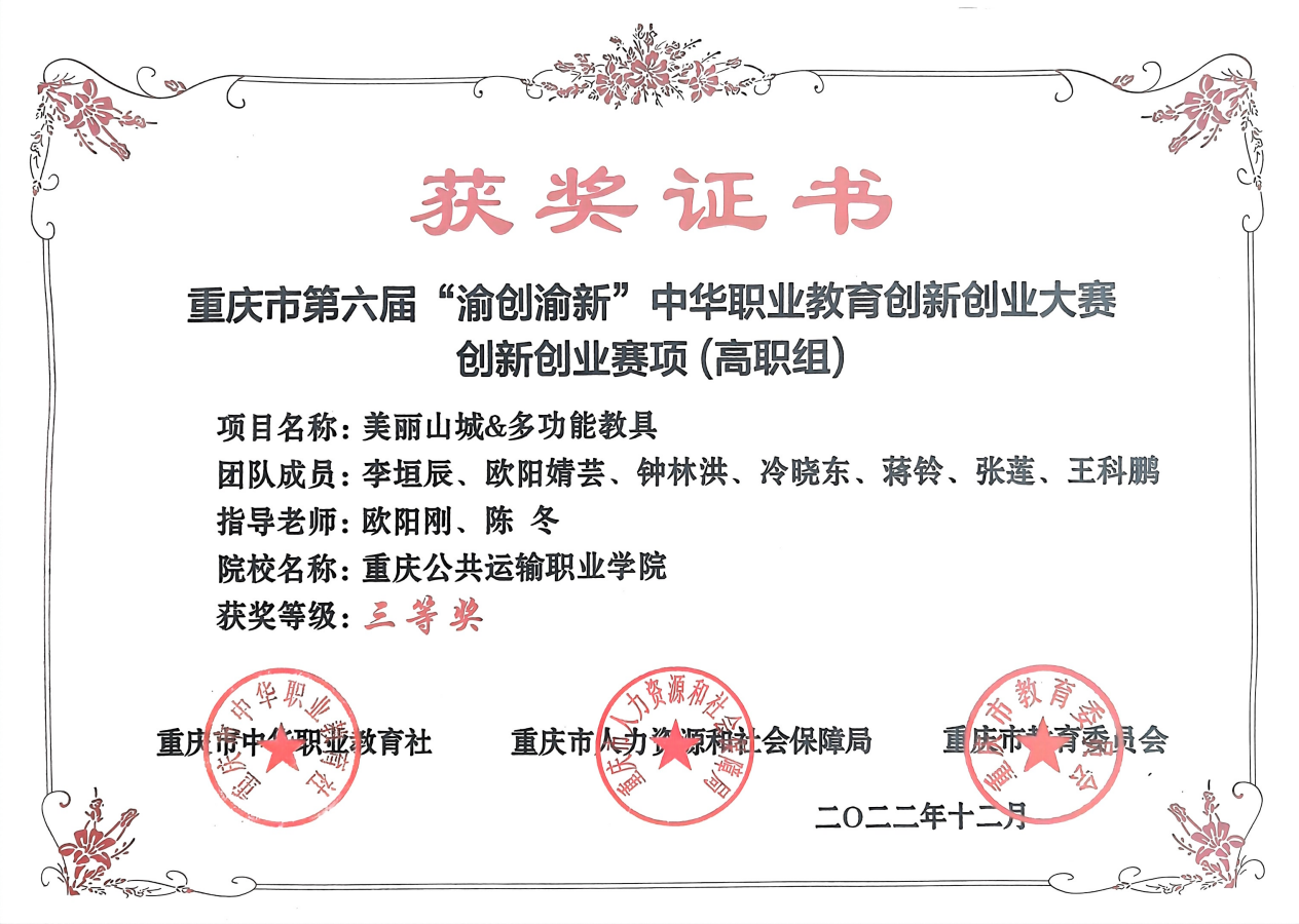 由重庆市人力资源和社会保障局主办的重庆市第六届“渝创渝新”中华职业教育创新创业大赛获奖证书近日送达。电子游戏选送的2个项目喜获大赛二等奖、三等奖,展示不俗实力。