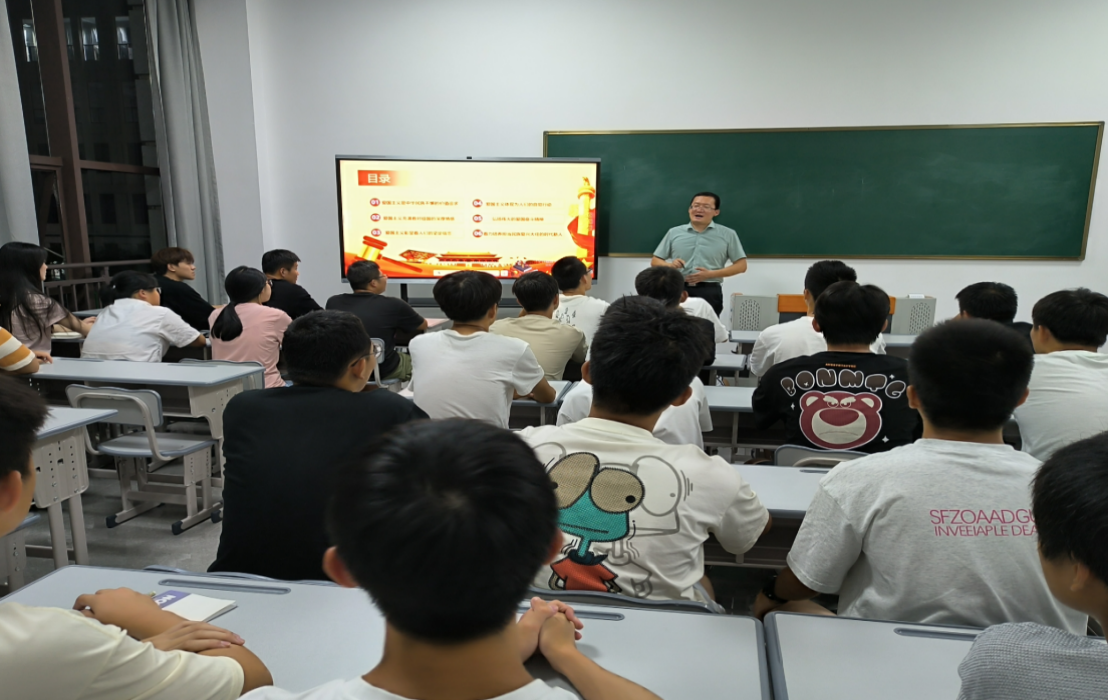 9月20日上午,智能装备与公管联合党总支书记张睿在德感产教融合中心,面向智能装备学院学生党员和青年学生代表,讲授题为“领会爱国主义的深刻内涵,弘扬伟大的爱国主义精神”的专题党课,引导大家弘扬爱国主义精神,厚植家国情怀。