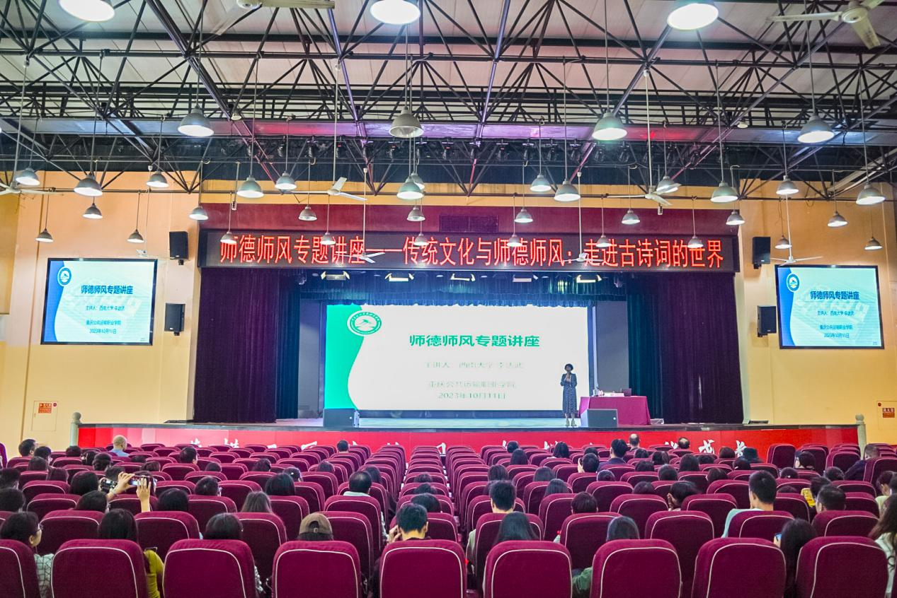 为贯彻落实立德树人根本任务,深入推进教师队伍建设,10月11日下午,学校邀请西南大学文学院李达武教授、重庆地区首位登上央视“百家讲坛”女学者到电子游戏科学城主校区学术报告厅,举办师德师风专题讲座。