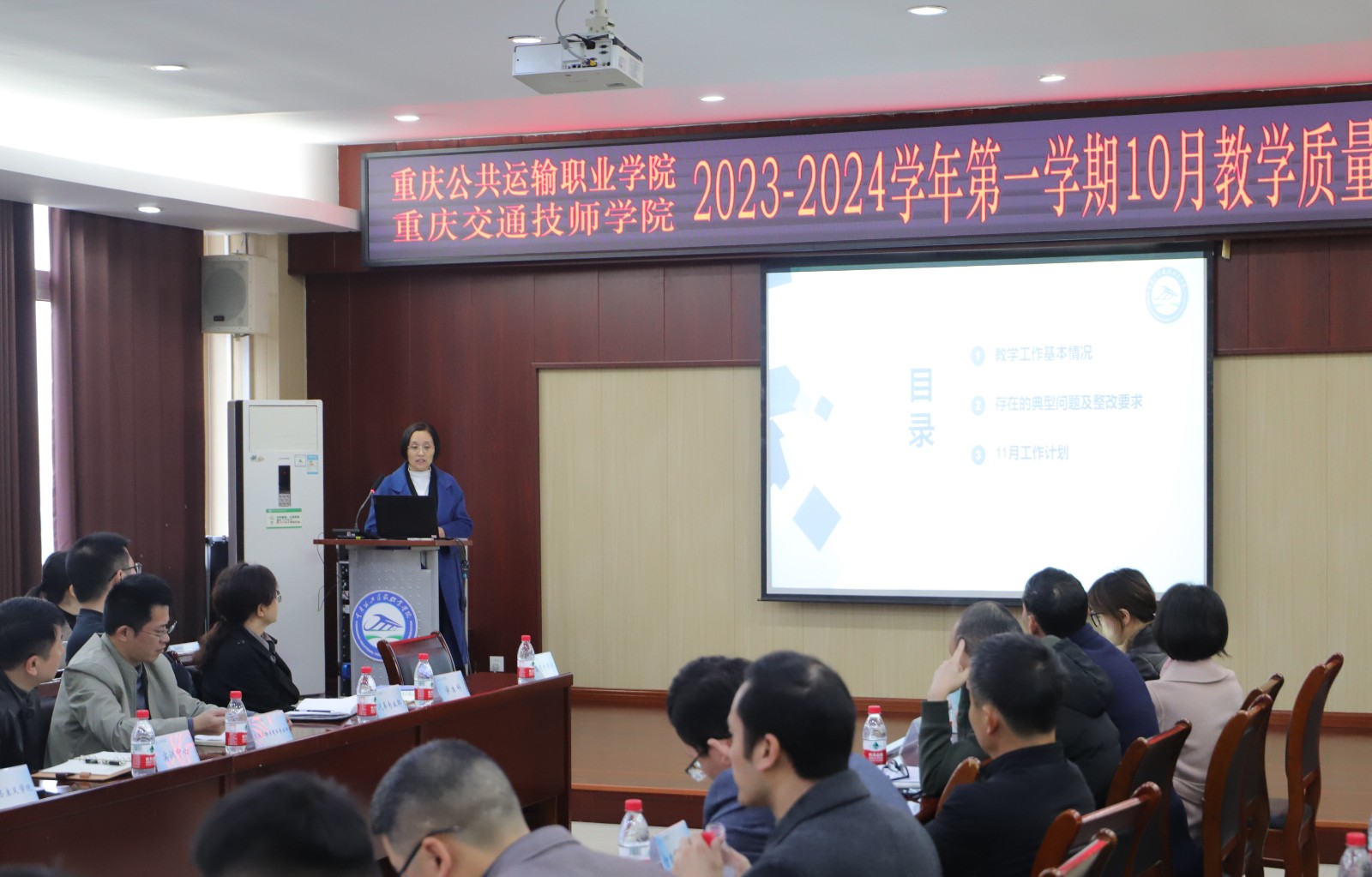 会上,教务处、交通技师学院教务科相关负责人以图文、视频结合的方式,通报10月教学运行情况,教学督导室负责人通报10月教学诊断、教学资料核查情况,对教案、课标等进行分类指导,五年一贯制学院、高考升学部、智慧交通学院、马克思主义学院、交商部负责人作交流发言。