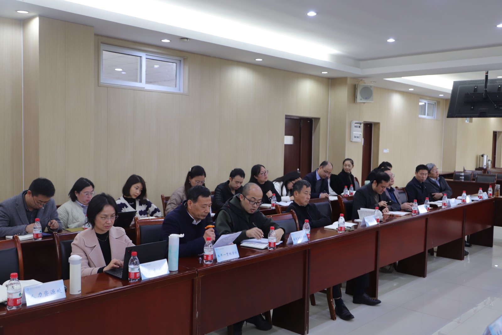 副校长刘畅、钟晓芬、唐春林等领导班子成员,各二级学院党政负责人、综合办公室主任、学工办主任、教学秘书,交通技师学院相关职能部门负责人、专任教师代表及相关人员参加会议。