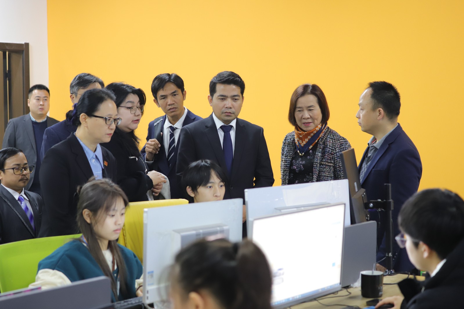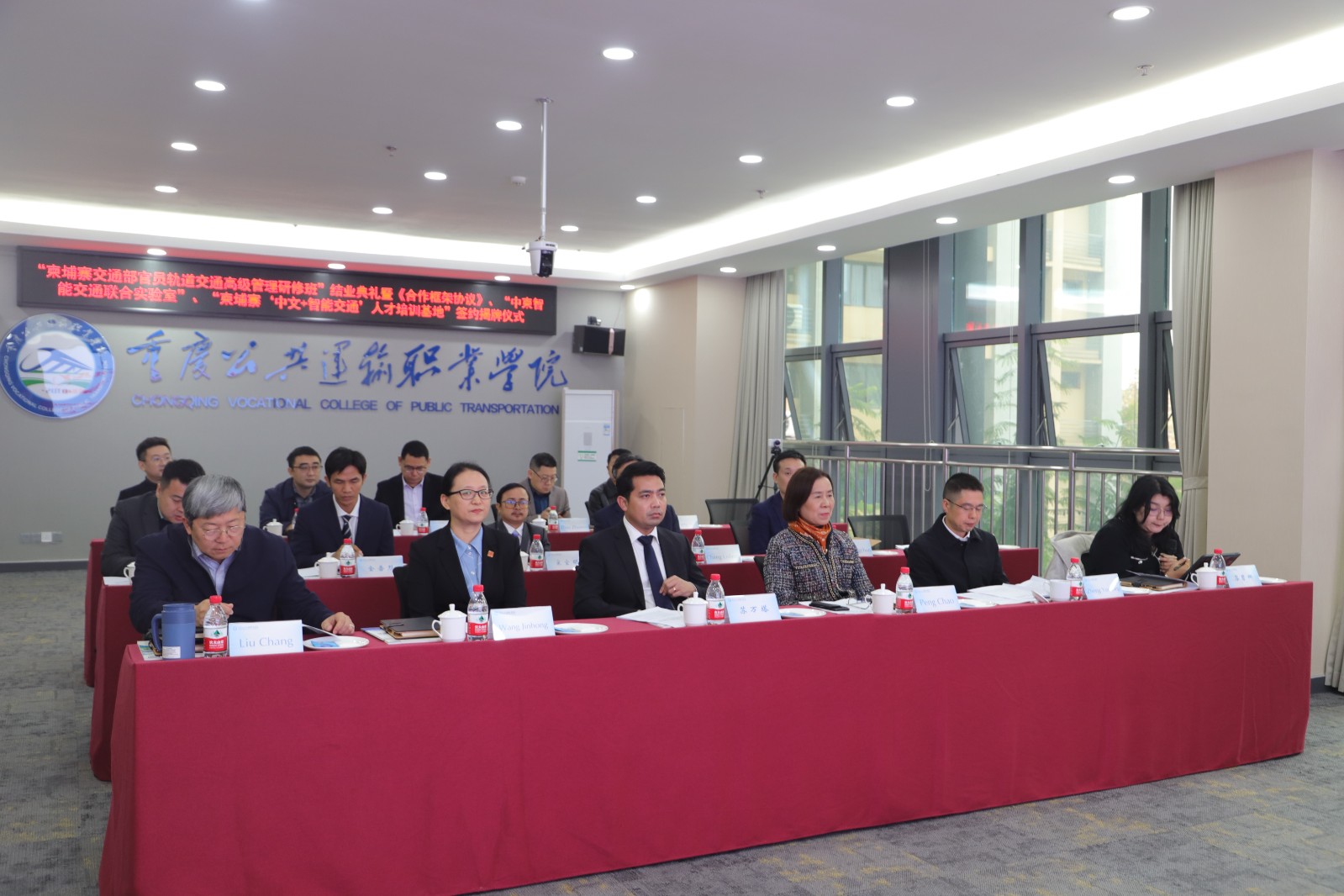 柬埔寨皇家科学院国际中文教育与教师教育学院院长苏碧娜、洪森公共工程与运输学院办公室副主任宋空明,重庆公交集团人力资源部副经理吴迎春、五洲汉风网络科技(北京)有限公司事业发展部经理程利生,学校发展规划与对外合作处、教务处、科研处、运输贸易学院、智慧交通学院、实训中心负责人参加本次活动。