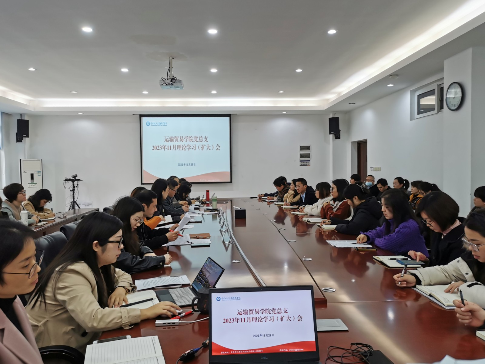 学校党委组织部相关工作人员,运输贸易学院全体教职工参加学习会。