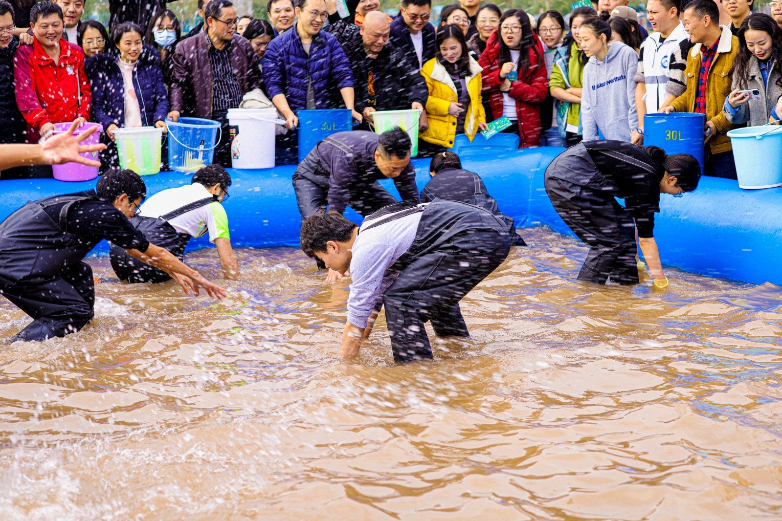 “抓大鱼”活动,则是组织9个分工会各选派的2男2女选手身穿下水裤,进入用塑胶围水栏内,在规定的时间内徒手抓水中提前放置的200斤鲫鱼,抓到的鱼即归分工会所有。