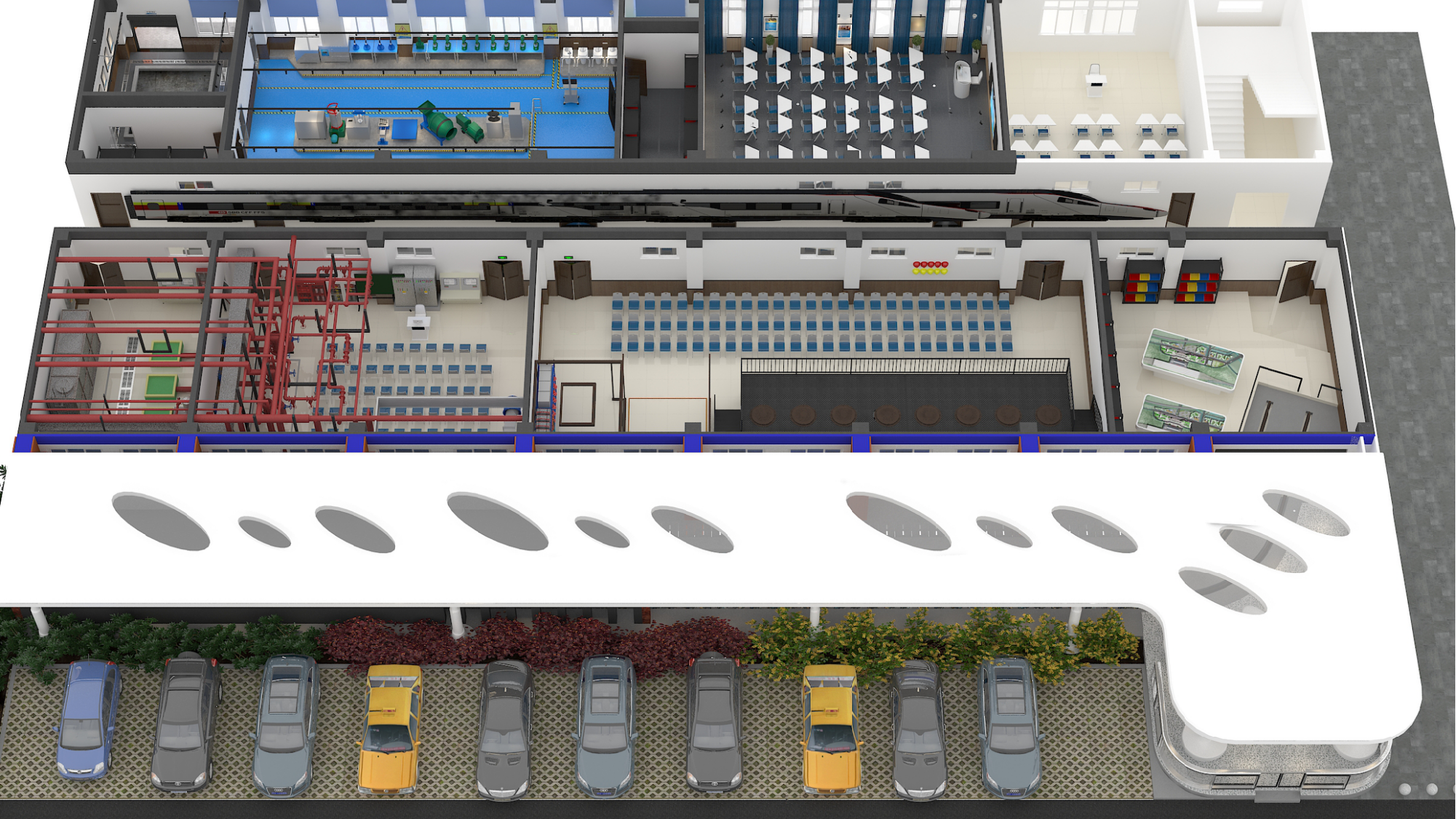 该实训室位于学校科学城主校区教学楼D栋1楼,建筑面积161m²,总计投入80万元。