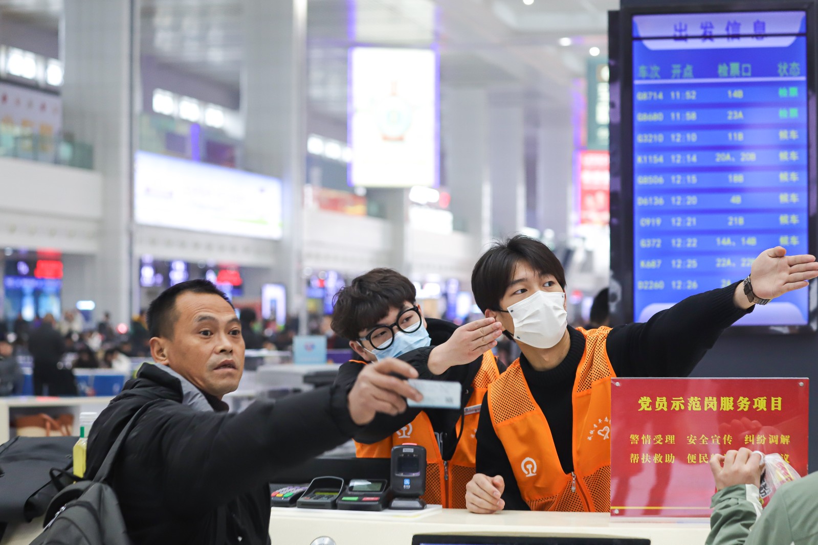 “您好,请问有什么可以帮您?”“您的检票口在这边,请往这边走”“请移步前方扫码购票”等,成为同学们在本次志愿服务活动中的高频词。