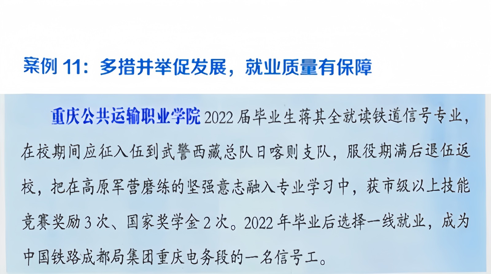 重庆运输职院毕业生优质就业案例入选《2023中国职业教育质量年度报告》