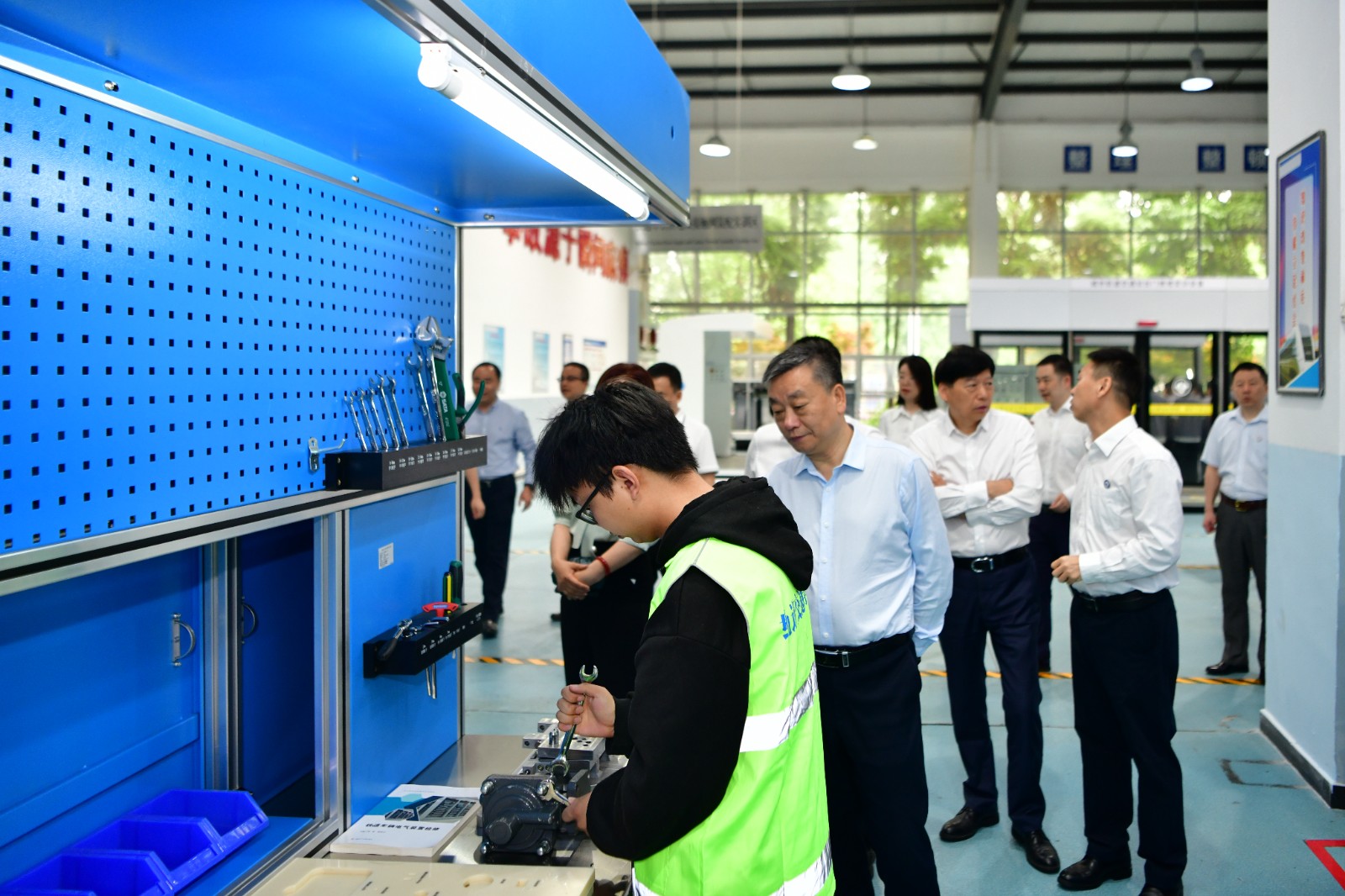 汇报会结束后,专家组仔细查阅学校“双高计划”建设有关材料,到虚拟仿真实训基地、全国城轨与高铁共享实训基地、轨道交通多网融合实训基地、铁道信号实训中心、城轨智慧运维实训中心等进行实地考察,全面了解学校“双高计划”建设成果。