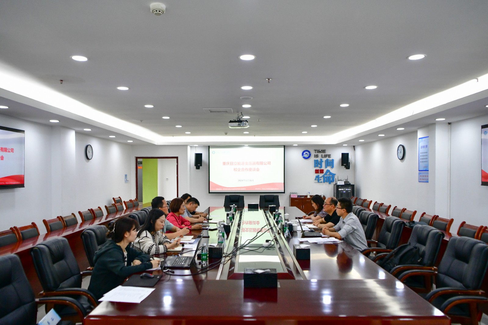 重庆日立能源变压器有限公司党办主任、工会副主席苏钰及相关负责人,学校发展规划与对外合作处、招生就业处、智能装备学院、轨道交通学院等相关部门负责人参加座谈。