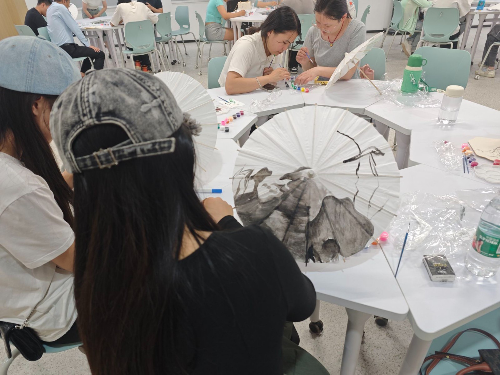 活动现场,师生们围坐在一起,充分发挥自己的想象力和创造力,围绕“廉”的主题,精心设计、绘制各种样式、内容的主题扇面,有以荷花象征廉洁的折扇,有以梅兰竹菊表达清高之志的团扇,还有以廉洁寓意书法的油纸伞,使大家在“廉”扇轻曳间,感受“清风拂面”,给夏日增添一抹清凉。