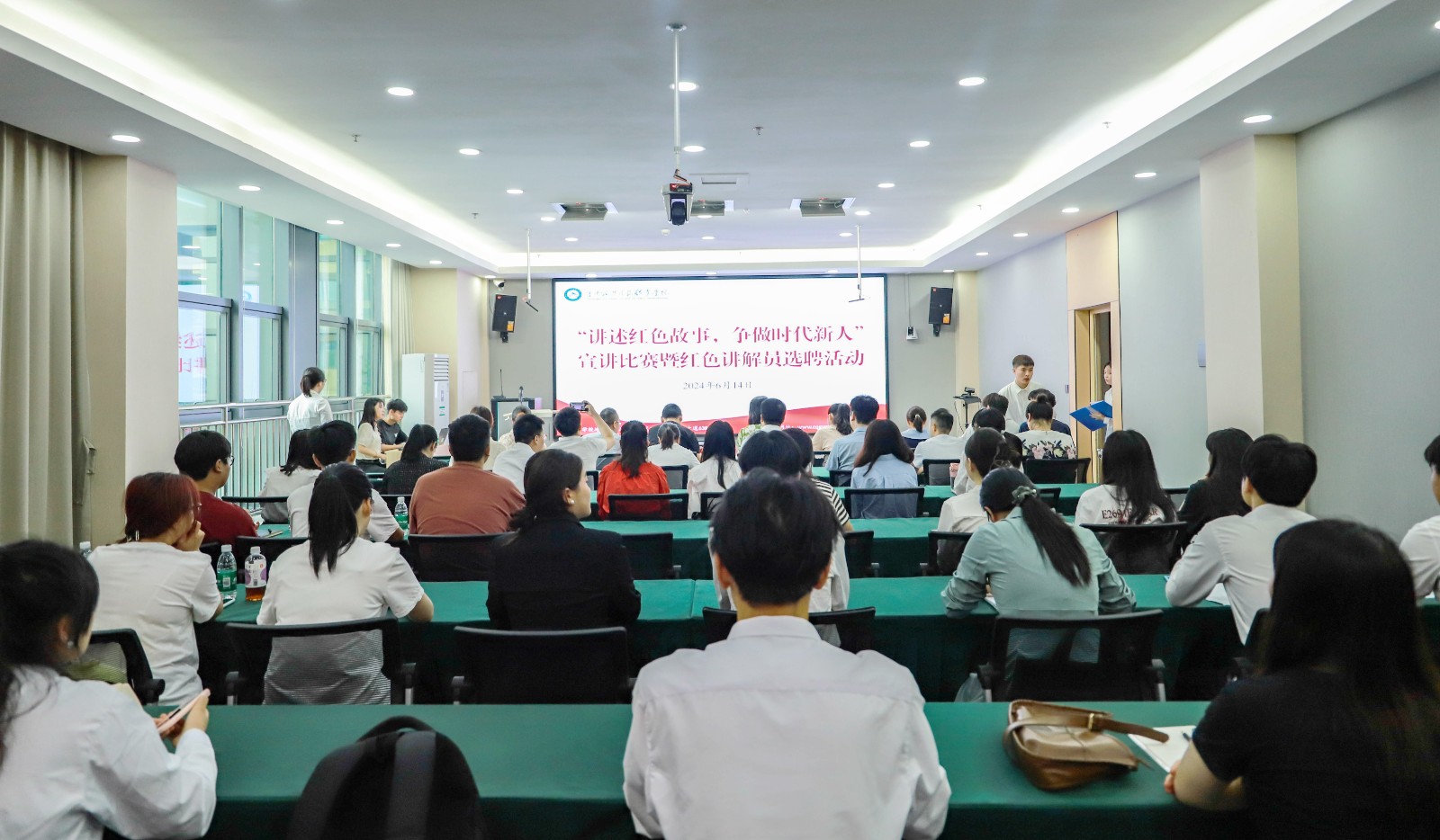 为传承红色基因,培育时代新人,6月14日,在科学城主校区办公楼三楼会议室,举办学校“讲述红色故事,争做时代新人”宣讲比赛暨红色讲解员选聘活动。