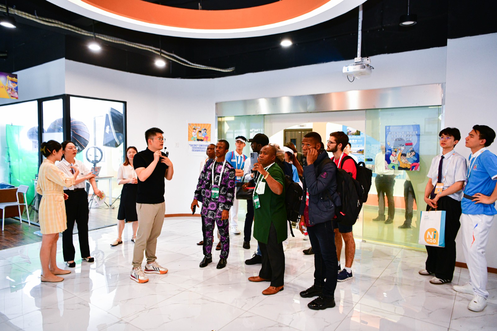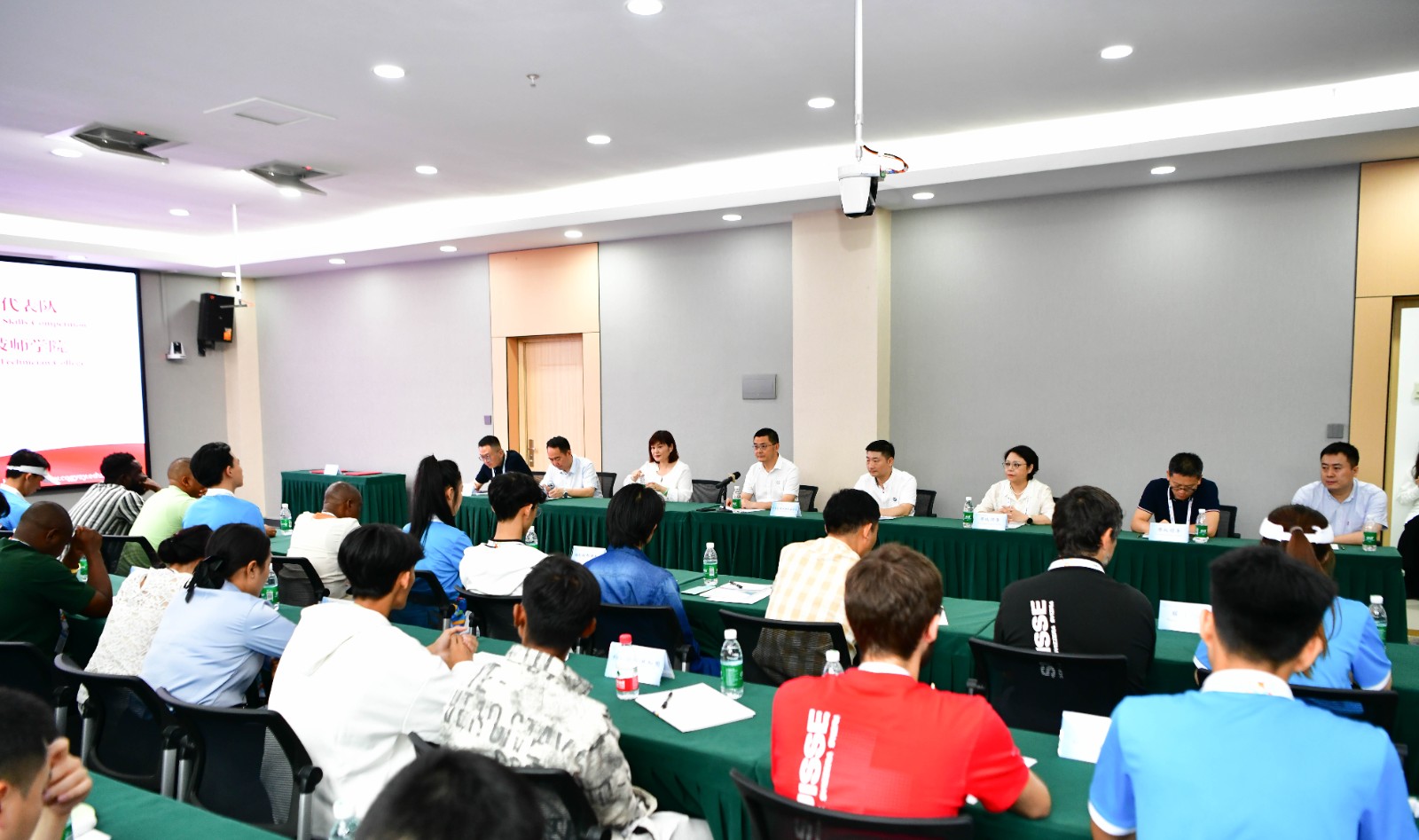 在学校办公楼3楼会议室举行的交流座谈会上,学校董事长刘林对来访的各国参赛代表表示欢迎,简要介绍学校办学情况,希望以参赛队这次到电子游戏考察交流为契机,进一步加强职业教育国际交流,不断拓展开放办学的路径。