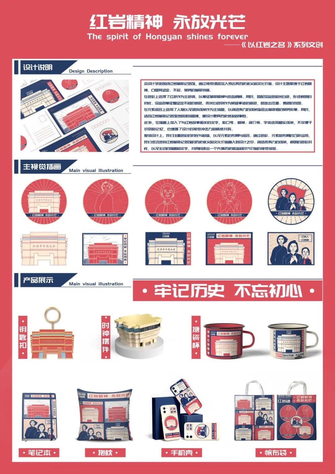 其中获得一等奖的,是由公共管理学院王一森、袁程、向志红设计的《以红岩之名》系列文创,指导老师由邱雅雄担任。作品聚焦弘扬红岩精神,通过视觉语言,尤其是色彩的对比与和谐、元素的布局与组合,以及色彩、元素和布局的巧妙运用,凸显其坚定、不屈、英勇的革命特质,深入传达其历史意义和文化价值。