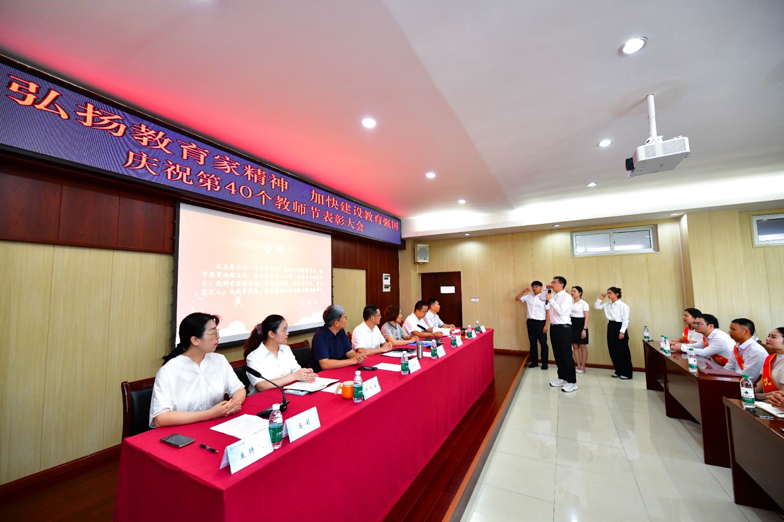 9月10日上午,学校在科学城主校区教学楼A栋403会议室,召开庆祝第40个教师节表彰大会,向全校教职员工致以节日的祝福,表彰先进,树立标杆,激励广大教职员工立足本职岗位大力弘扬教育家精神,为加快建设教育强国作出新的更大贡献。