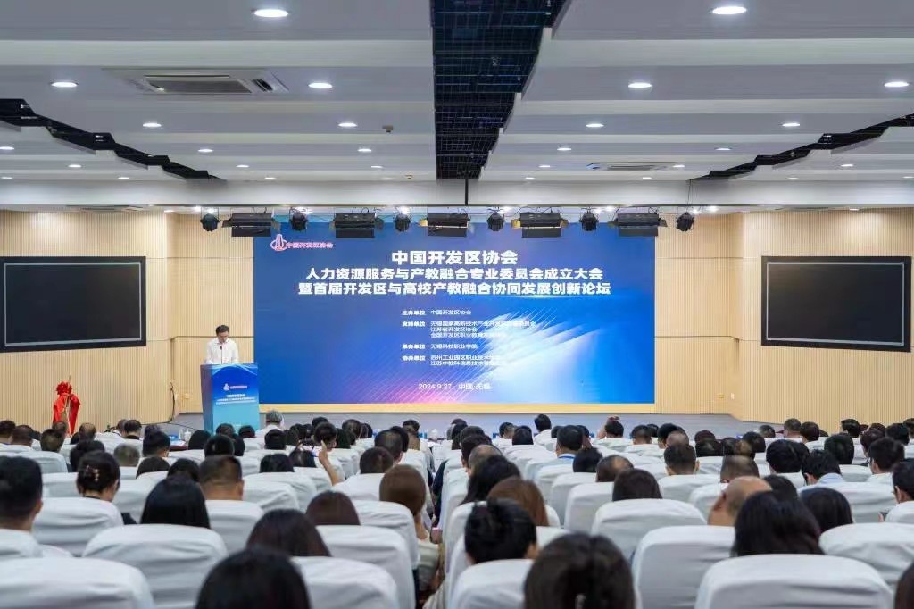 学校党委书记彭超受邀参加9月底在江苏无锡科技职业学院举行的中国开发区协会人力资源与产教融合专委会成立大会暨首届开发区与高校产教融合协同发展创新论坛,并在会上宣介电子游戏国企办职业教育经验。