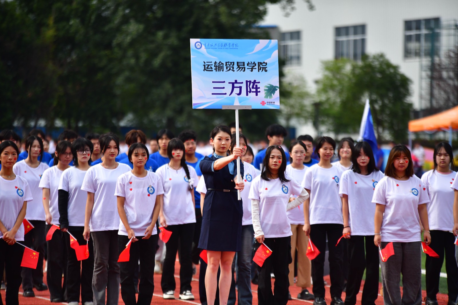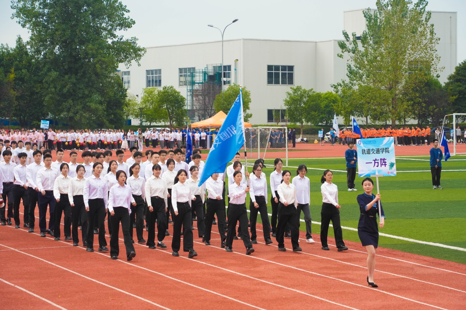 在入场式环节,伴随着激昂的运动员进行曲,运动会主题抬牌方阵、彩旗方阵,轨道交通学院、运输贸易学院、智慧交通学院、智能装备学院、公共管理学院、铁道与建筑学院、交通技师学院、五年一贯制学院、教职工代表方阵,迈着铿锵的步伐、喊着嘹亮的口号,依次通过主席台,并通过诗词功夫、礼仪操、舞龙、舞蹈表演,主题标识与单位特色元素展示等方式,展现全校师生的良好精神风貌和各单位的特色亮点。