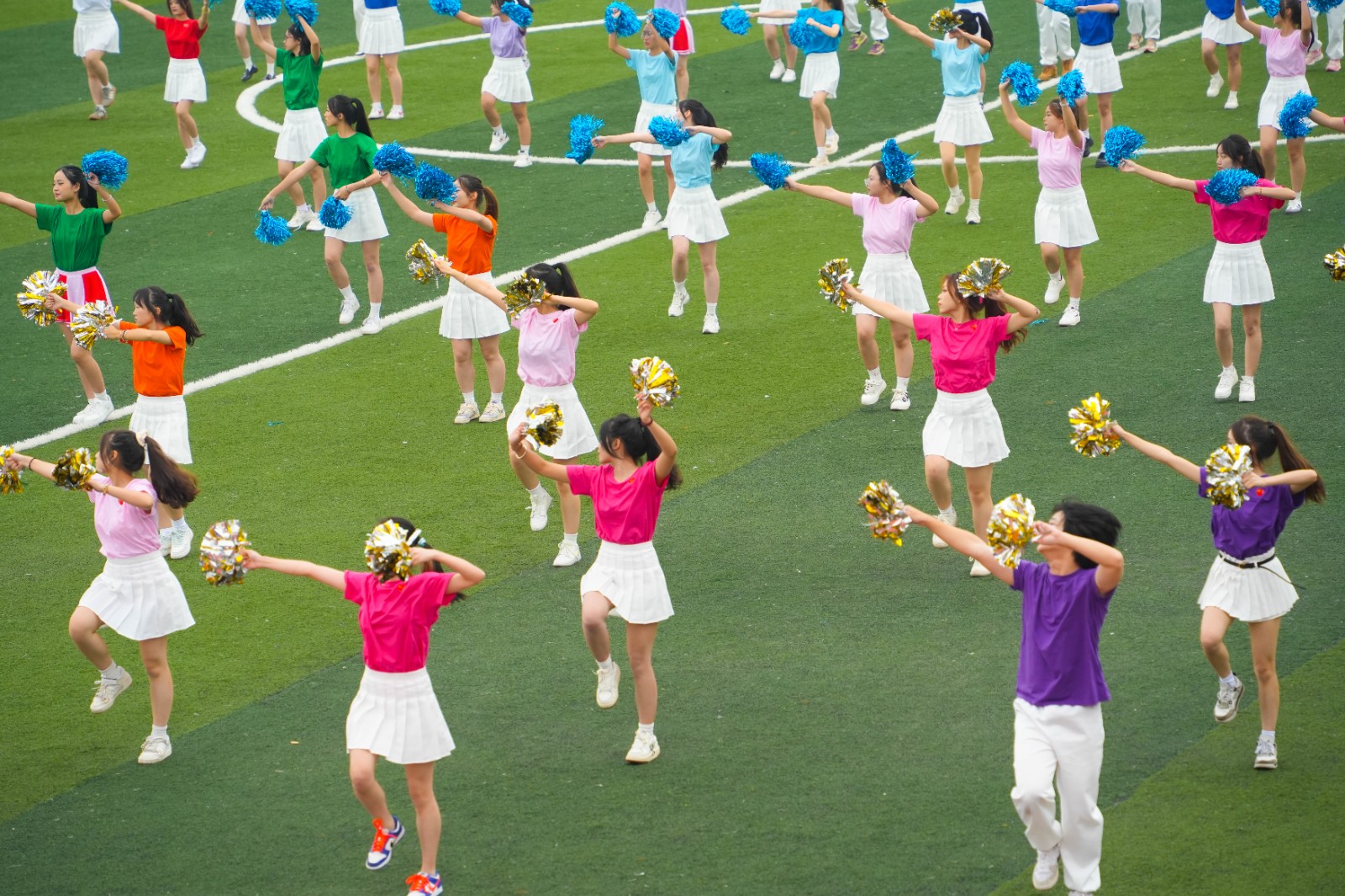 在团体展演环节,举行了青春洋溢的大型团体啦啦操表演。