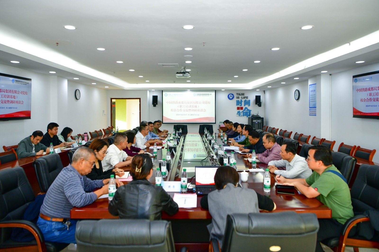 在科学城主校区办公楼507会议室举行的座谈交流会上,学校党委副书记、董事长刘林对中国铁路成都局集团党校在师资共享等方面对学校的大力支持表示感谢,希望今后进一步加强校企联系,深化校企合作、产教融合,做到优势互补、共建共享、资源整合、共同发展。