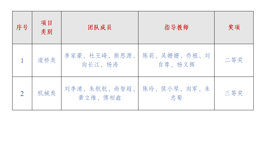 其中,获得道桥类二等奖的团队成员,由来自铁道与建筑学院李家豪、杜王峰、熊思源、向长江、杨涛5名同学组成,指导老师由陈莉、吴姗姗、乔根、刘自尊、杨义辉担任。
