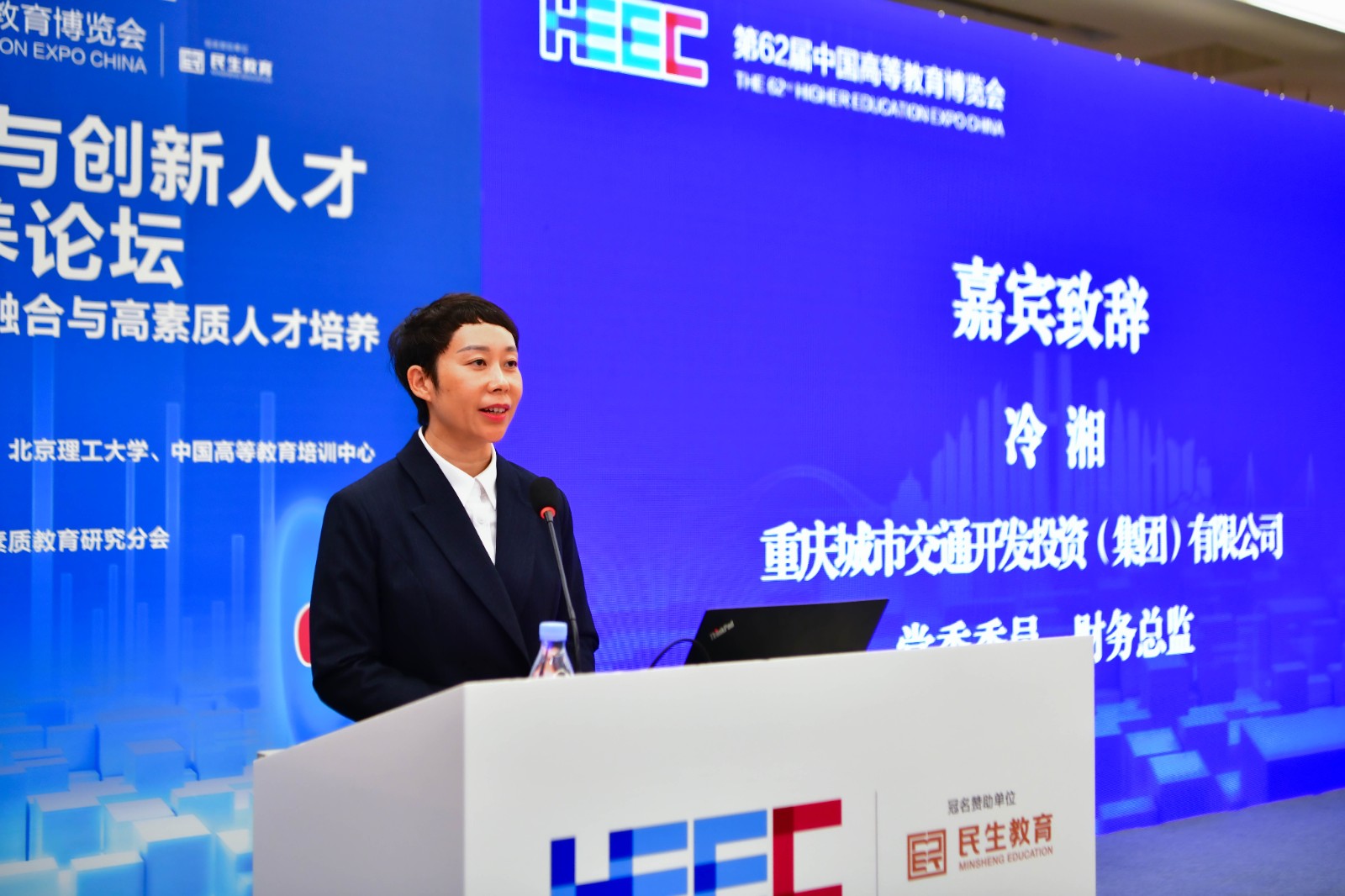 重庆城市交通开发投资(集团)有限公司领导冷湘在致辞中,简要介绍重庆交通开投集团作为全国首个将城市多种交通方式整合为一体的平台和全市城市公共交通建设运营管理的主力军,坚持“以教促产、以产助教、产教融合、产学合作”,构建独具交通运输行业特点和国有企业办职业教育特色的,产教一体、校企一体、中高职一体现代职业教育体系等情况。