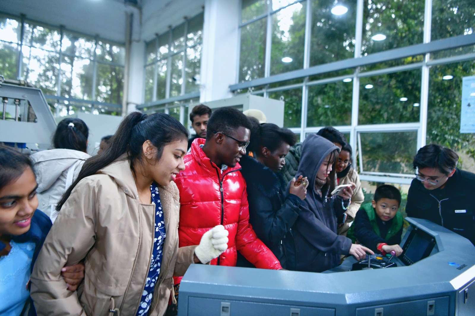 在校参观期间,20多名留学生欣喜地流连于基地各个场馆和设备之间,不时拿起手中的相机拍下精彩瞬间或打卡留念,连连表达不虚此行、收获颇丰,和期待有机会再来学校参观学习的强烈愿望。