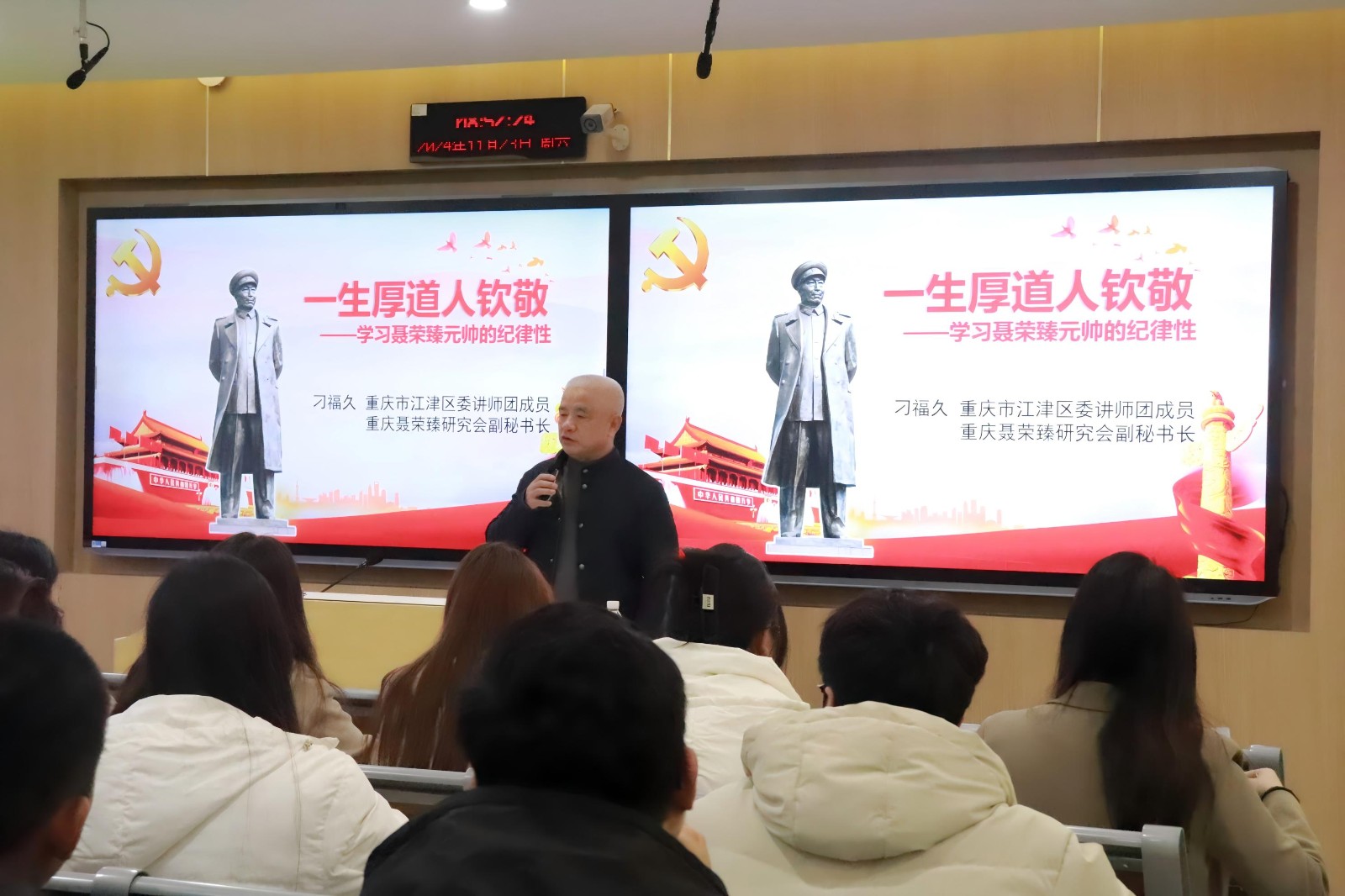 为确保培训效果,学校邀请重庆聂荣臻研究会副秘书长、重庆市江津区委讲师团成员刁福久,学校党委宣传部、纪律检查室负责人,智能装备与公管联合学生党支部书记、运输贸易学生党支部书记和党委宣传部、党委组织部老师担任主讲,进行专题授课。