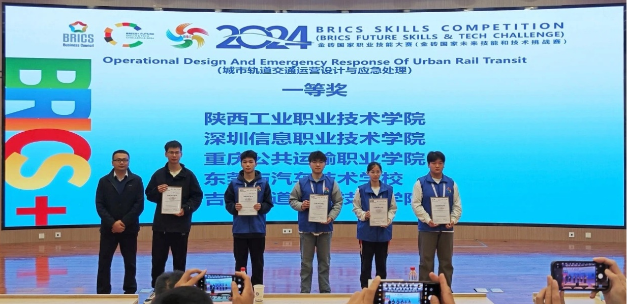 2024年金砖国家职业技能大赛城市轨道交通运营设计与应急处理赛项国际总决赛,11月24日在陕西工业职业学院落幕。经过激烈比拼,代表电子游戏参赛的运输贸易学院代表队斩获比赛一等奖,展示学校对标一流、改革攻坚,在城市轨道交通运营设计与应急处理专业教育教学、人才培养等方面的强劲实力。