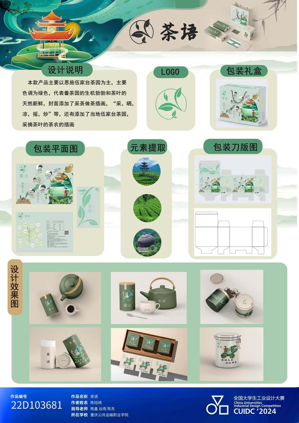 获得二等奖的,是由来自公共管理学院郑静、蒋小燕同学设计的作品《景禾HEBE》,指导老师由谷雨担任;获得三等奖的,是由来自公共管理学院陈钰琦同学设计的作品《茶语》,指导老师由熊鑫、谷雨、陈东担任。