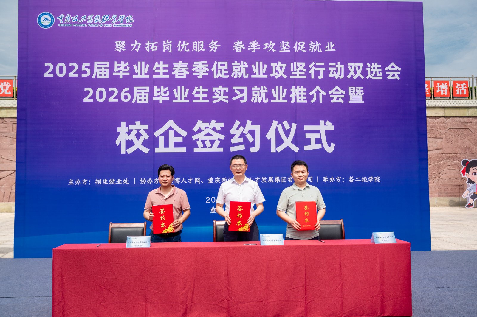 活动签约环节,学校董事长刘林、党委书记白凯、校长吴海峰,副校长钟晓芬、陈兴劼等校领导现场与中铁八局集团电务工程有限公司、重庆通邑卫士智慧生活服务有限公司等12家企业签订校企合作协议,在共建实习基地、订单式培养等方面开展密切合作。