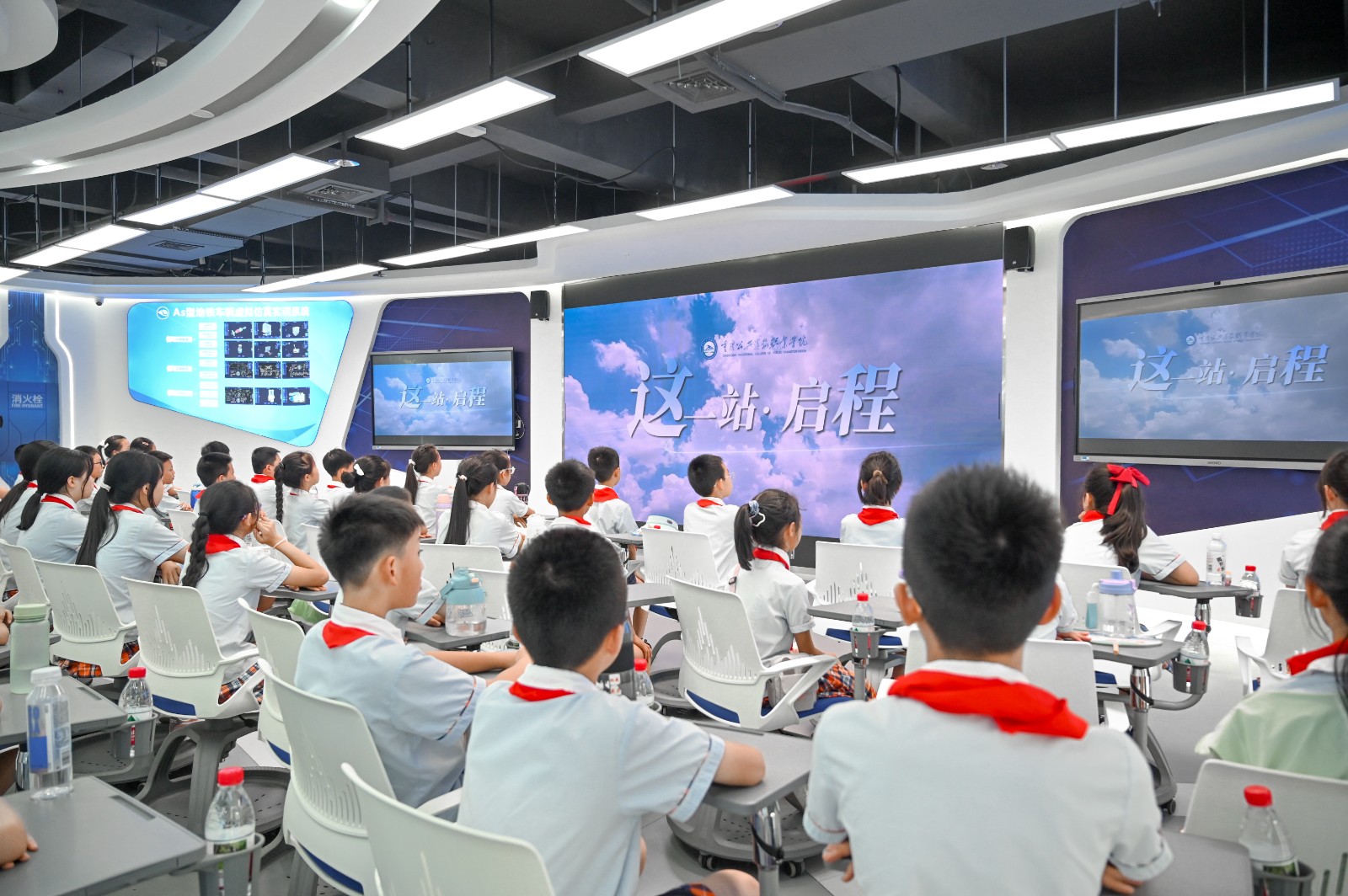 在学校虚拟仿真实训基地举行的活动开幕会上,组织观看学校形象宣传片“这一站,启程”,并开展交通安全、文明知识互动问答。