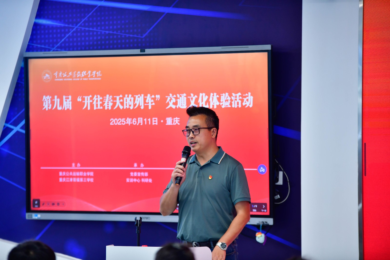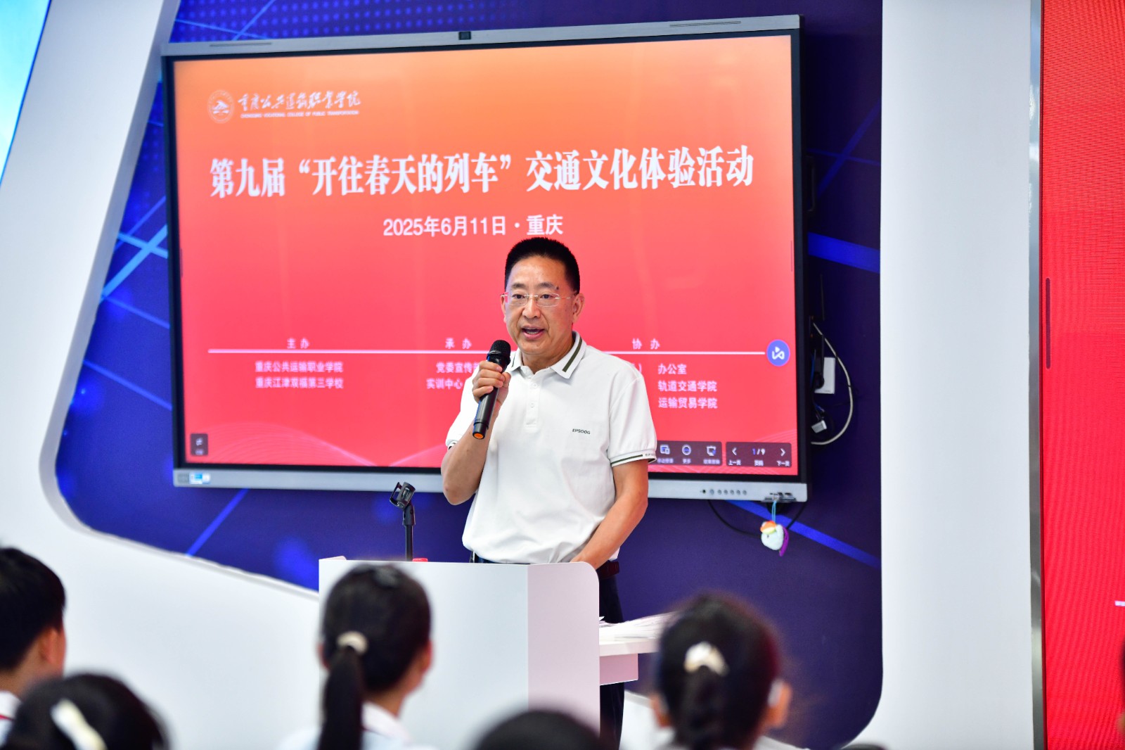 学校党委书记白凯在致辞中,对前来参加活动的江津双福第三小学的50多名学生、老师和家长代表表示欢迎,并简要介绍学校由市属国有重点企业、重庆城市交通开发投资(集团)有限公司全资举办,是重庆市优质高等职业学校、重庆市高水平高职学校和唯一被纳入重庆市轨道交通产业链名录的高职学校,先后培养全日制毕业生30000余人、“一带一路”沿线国家留学生1000余人,为企业提供高质量培训服务,为重庆乃至西南地区交通行业可持续健康发展提供有力人才和技能支撑等情况,预祝活动取得圆满成功。