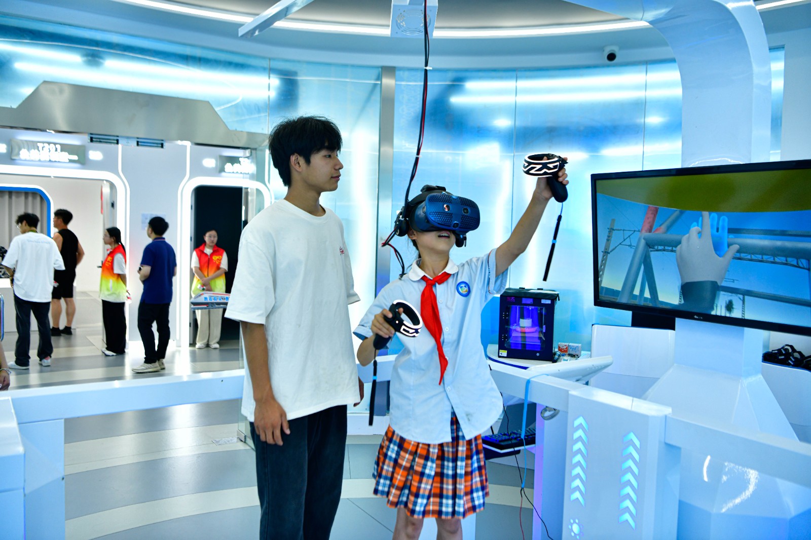 活动依托学校先进配套的虚拟仿真设备和实操设备,邀请同学们现场沉浸式体验铁路机车驾驶技术、成渝铁路主题红色VR教学项目,并通过听科普讲解和参加主题打卡,观摩交通文化礼仪操表演等形式,普及交通科技、交通文明、交通法规知识,充分展示我国交通强国尤其是铁路和城市轨道交通建设取得的丰硕成果,积极推进大中小学思政课一体化建设,引导青少年进一步厚植爱国情怀,坚定文化自信。