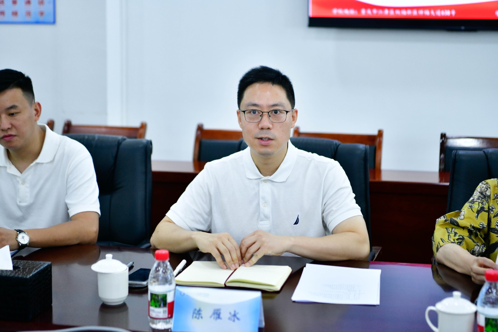 6月12 日下午,校长吴海峰在学校科学城主校区办公楼507会议室,与来电子游戏调研的江津区商务委副主任陈雁冰及随访的6家企业领导座谈交流。
