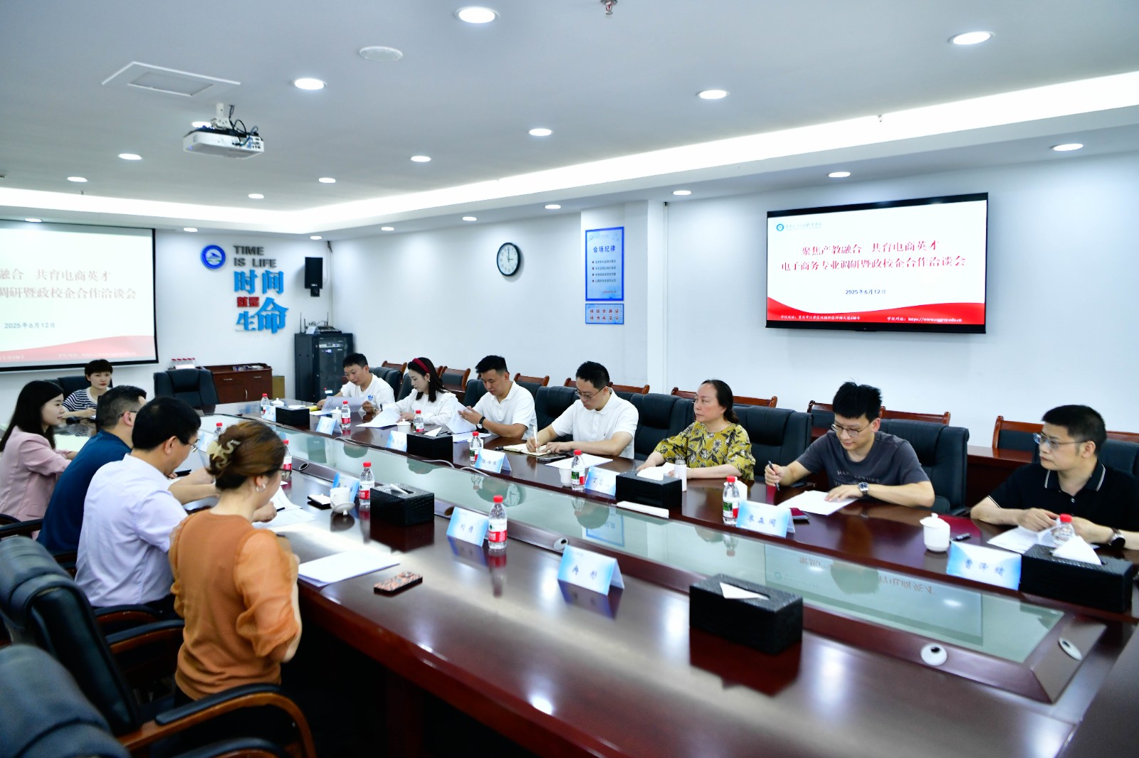 会上,校企与会人员围绕跨境电子商务、食品及汽车零配件电商人才培养、校地企电商人才共育、区域电子商贸中心共创、全媒体运营人才建设等进行深入交流。