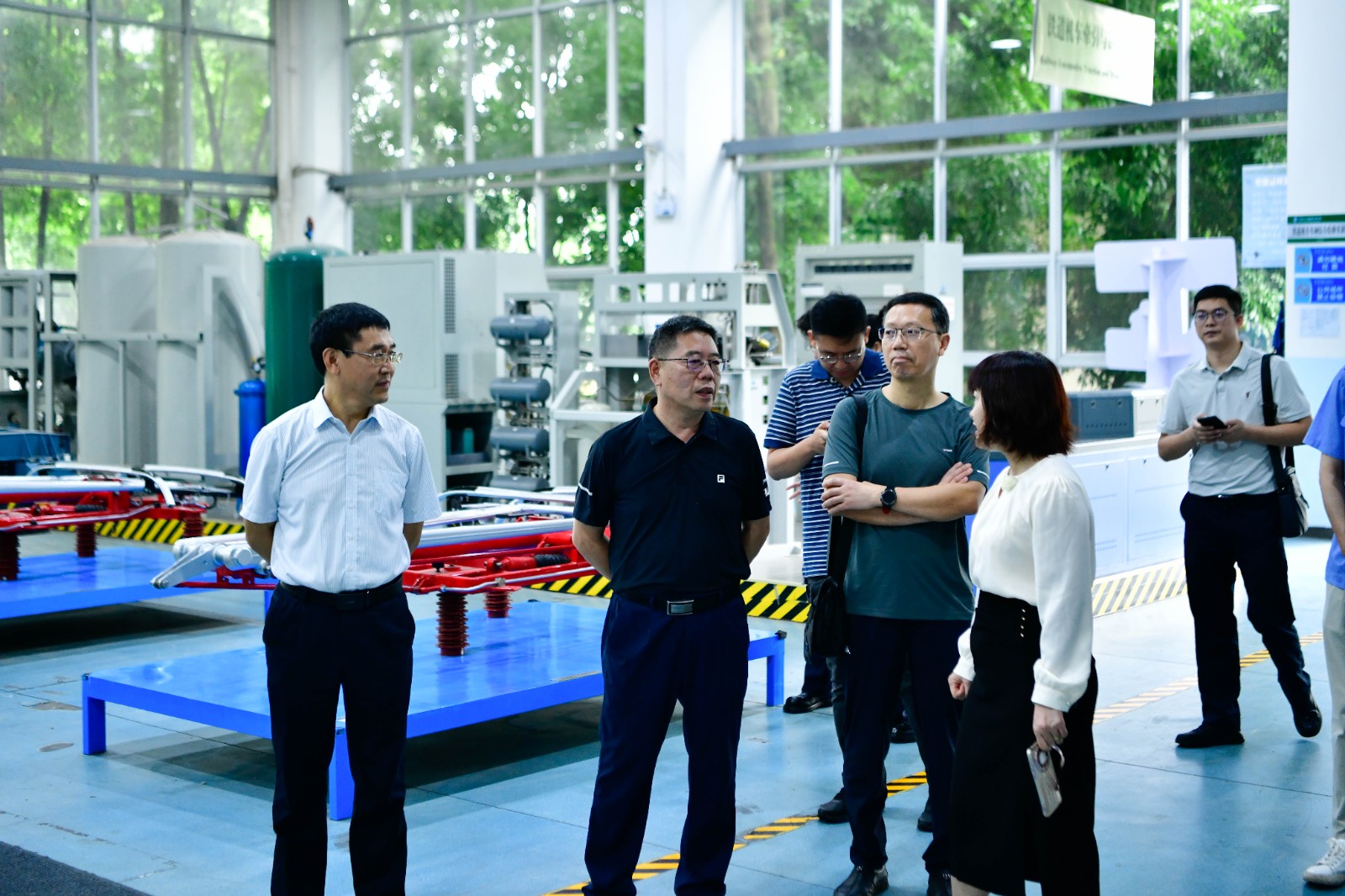 期间,吴海峰陪同周存刚等到访客人,到全国城轨与高铁共享技术实训基地、虚拟仿真实训基地参观,深入了解各实训区域建设情况,现场观摩轨道交通学院学生铁道机车控制阀拆解实训、普速铁路机车模拟驾驶训练、车钩检修作业实训、货车转向架测距检修实训、沉浸式VR虚拟仿真实训教学等情况。