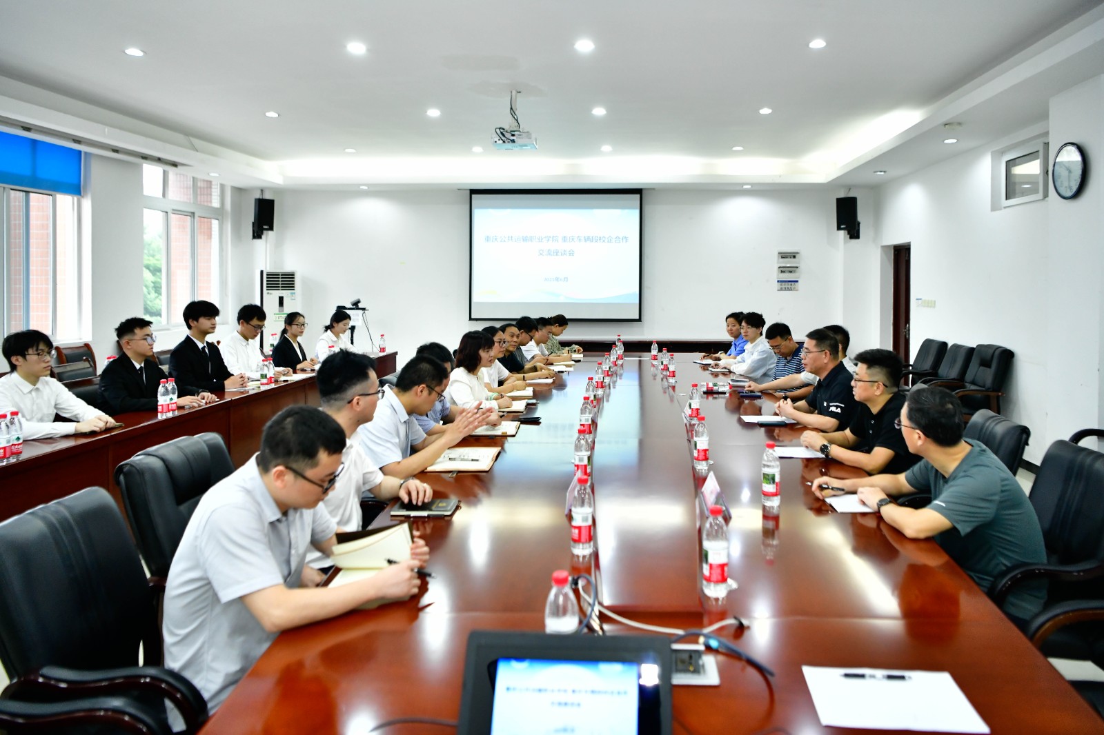 在教学楼A栋401会议室举行的座谈会上,学校副校长钟晓芬和周存刚等校企领导,围绕校企党建共建、技能竞赛与培训资源深度合作、文体活动交流、毕业生岗位评价反馈等进行座谈交流。双方表示,未来将通过扩大校企合办技能竞赛规模、拓展合作领域等形式,进一步推动校企产学研创多方位深度融合。
