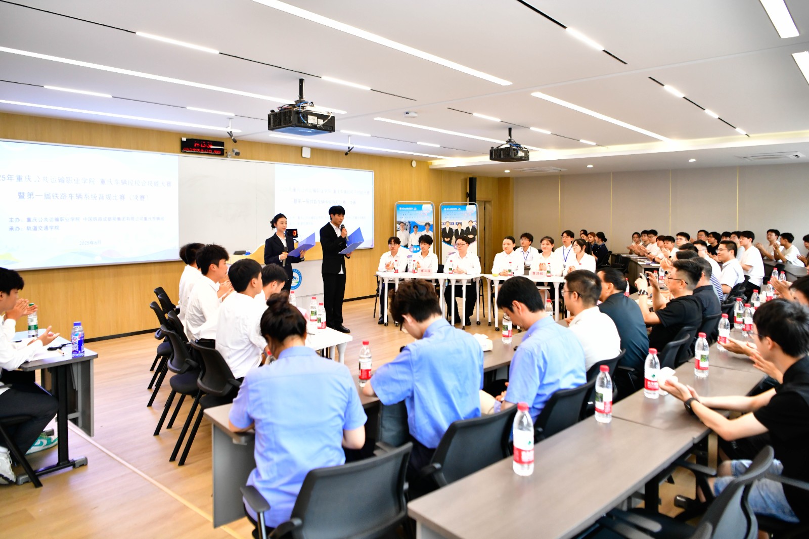 当日下午,周存刚一行以嘉宾身份,观摩指导学校首届铁道车辆方向背规比赛决赛,并为获奖选手颁奖。