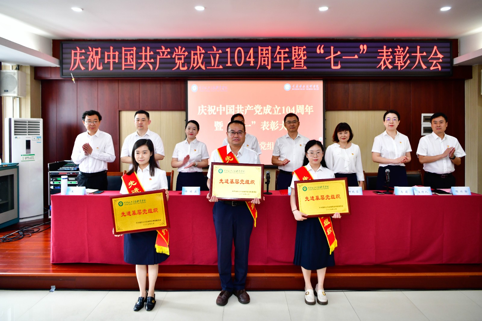 7月1日上午,学校在科学城主校区教学楼A栋403会议室,召开庆祝中国共产党成立104周年暨“七一”表彰大会,表彰一年来在工作中政治过硬、贡献突出的先进单位和个人,激励各级党组织和广大党员实干担当、接续奋斗。