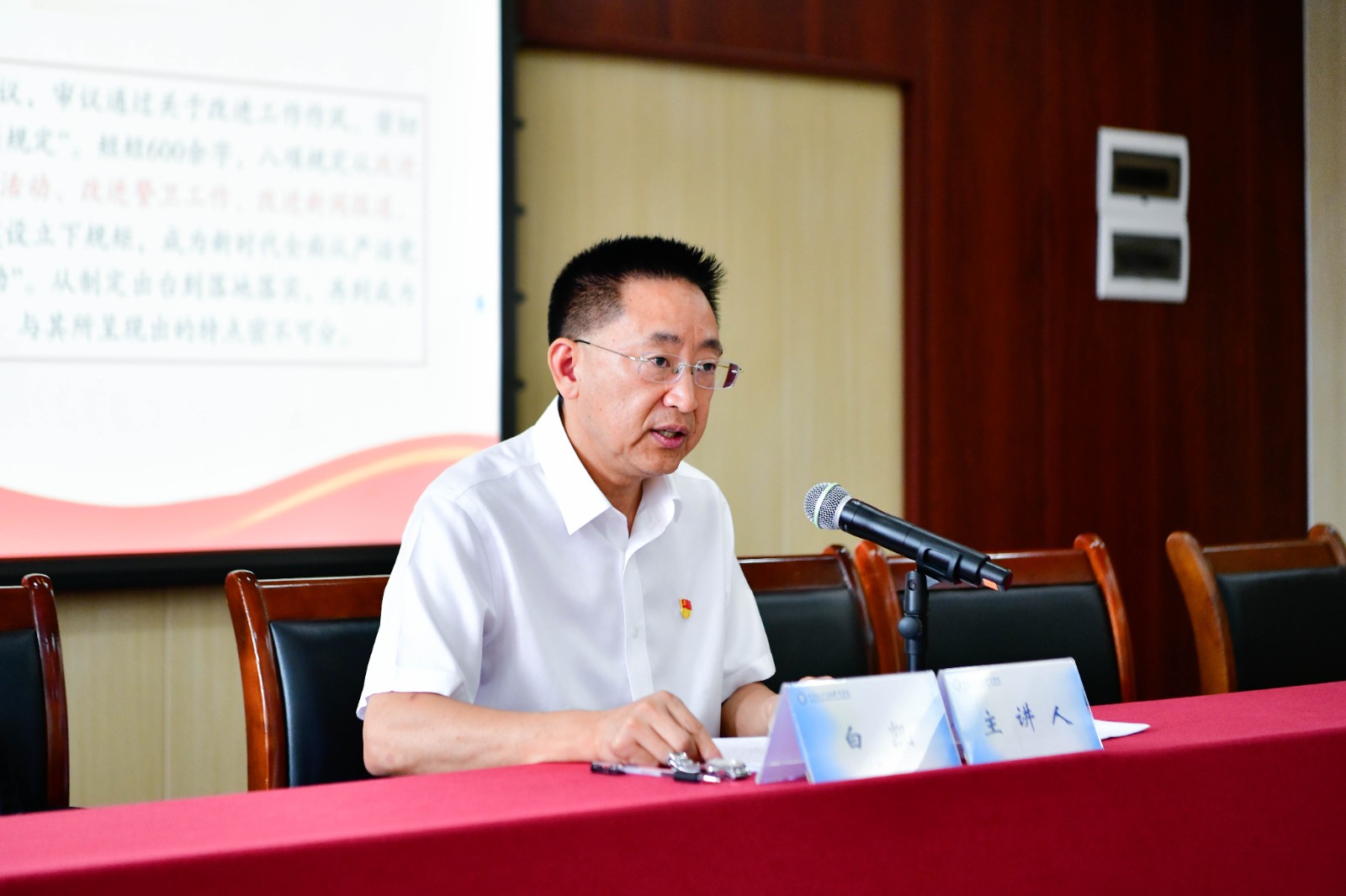 学校党委书记白凯在会上,以《深入贯彻落实中央八项规定精神为建设国内一流、国际知名的交通运输类高职学校提供优良作风保障》为题,讲授专题党课。