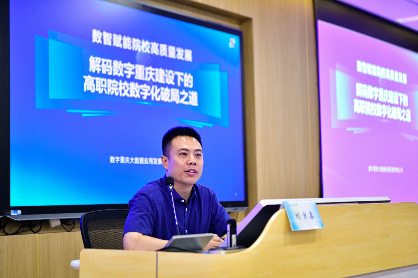 论坛邀请数字重庆公司国资大数据公司产品总监刘京鑫作专题讲座。刘京鑫在讲授过程中,结合数字化建设与教育改革实践,从“认知破局”“方法领航”“业务筑基”“场景落地”四个维度,系统解析院校数字化发展模式,论述数字化转型发展趋势及路径,阐释院校数字化发展的内在逻辑与实践模式,为学校在数字校园建设、人工智能产业、教育教学改革以及对接未来产业等方面提供了新思路。