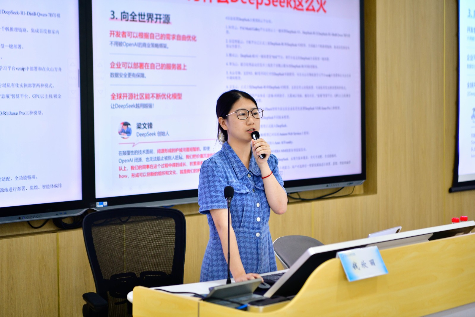 在经验分享环节,邀请智慧交通学院专任教师钱欣丽,围绕“AI赋能教学实践案例”主题,对如何通过提示词撰写技巧激发AI潜能、如何通过AI助力教学方案撰写、制作教学视频等进行分享和操作演示。